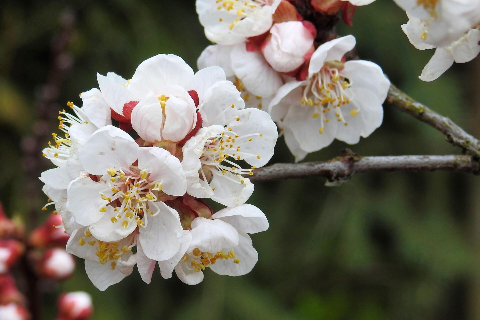 살구꽃은 동그란 꽃잎, 짧은 꽃자루, 도드라져 보이는 수술 등 모두 매화와 비슷합니다. 그러나 꽃받침을 보면 구분할 수 있는데요 살구꽃 꽃받침은 뒤로 활짝 젖힌 모습입니다. 꽃을 감싸고 있는 매화의 꽃받침과는 분명히 구분이 된답니다.