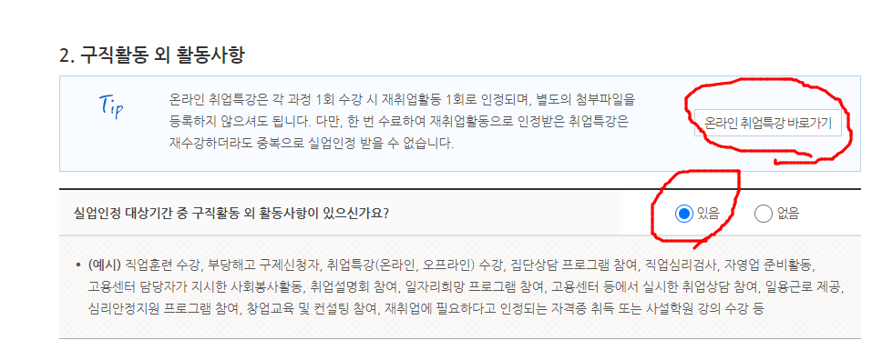 * 영상 들으신 후 '구직활동 외 활동사항'에 '있음'이라고 체크해 주세요.