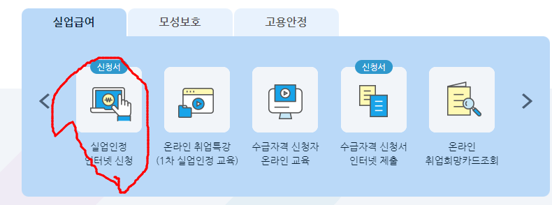 2. 로그인 후 '실업인정 인터넷 신청'을 클릭합니다.