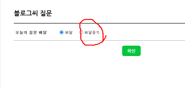 4. '블로그씨 질문' 보이시나요? '배달중지' 선택하신 후 확인 누르시면 됩니다.