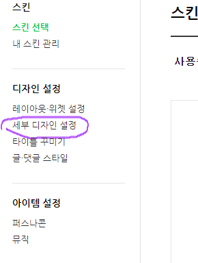 4. 왼쪽 메뉴에 있는 '세부디자인설정' 클릭