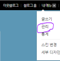 2. 블로그 상단에 있는 '내메뉴 -> 관리' 선택