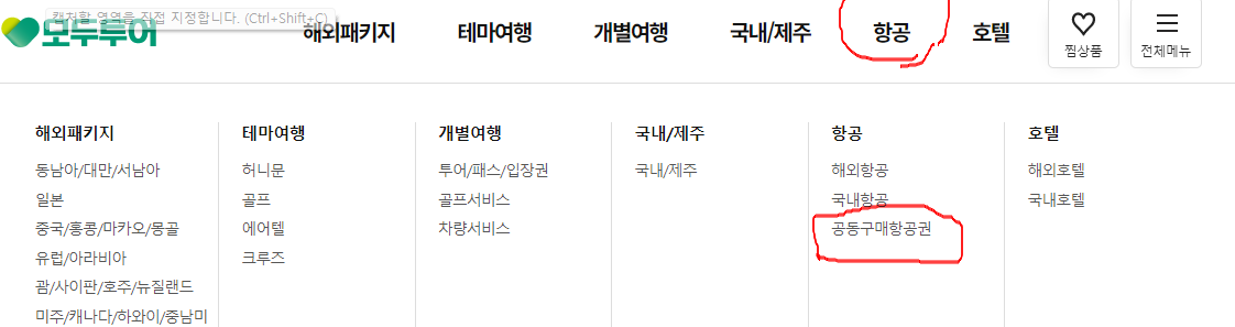2. 사이트 들어가셨나요? '공동구매 항공권' 클릭
