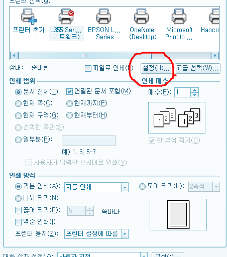 1. 자신이 프린터 할 문서에서 프린터 인쇄를 눌러주세요