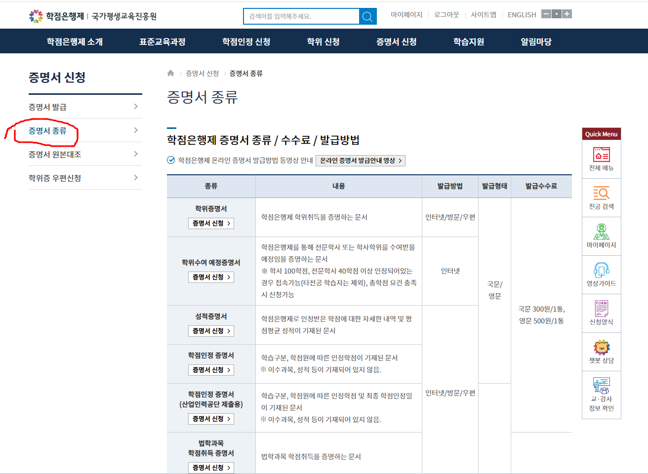 1. 학점 은행제 졸업 증명서 발급 사이트 클릭