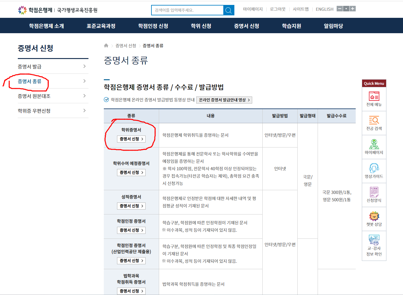 1. 학점 은행제 졸업 증명서 발급 사이트 클릭