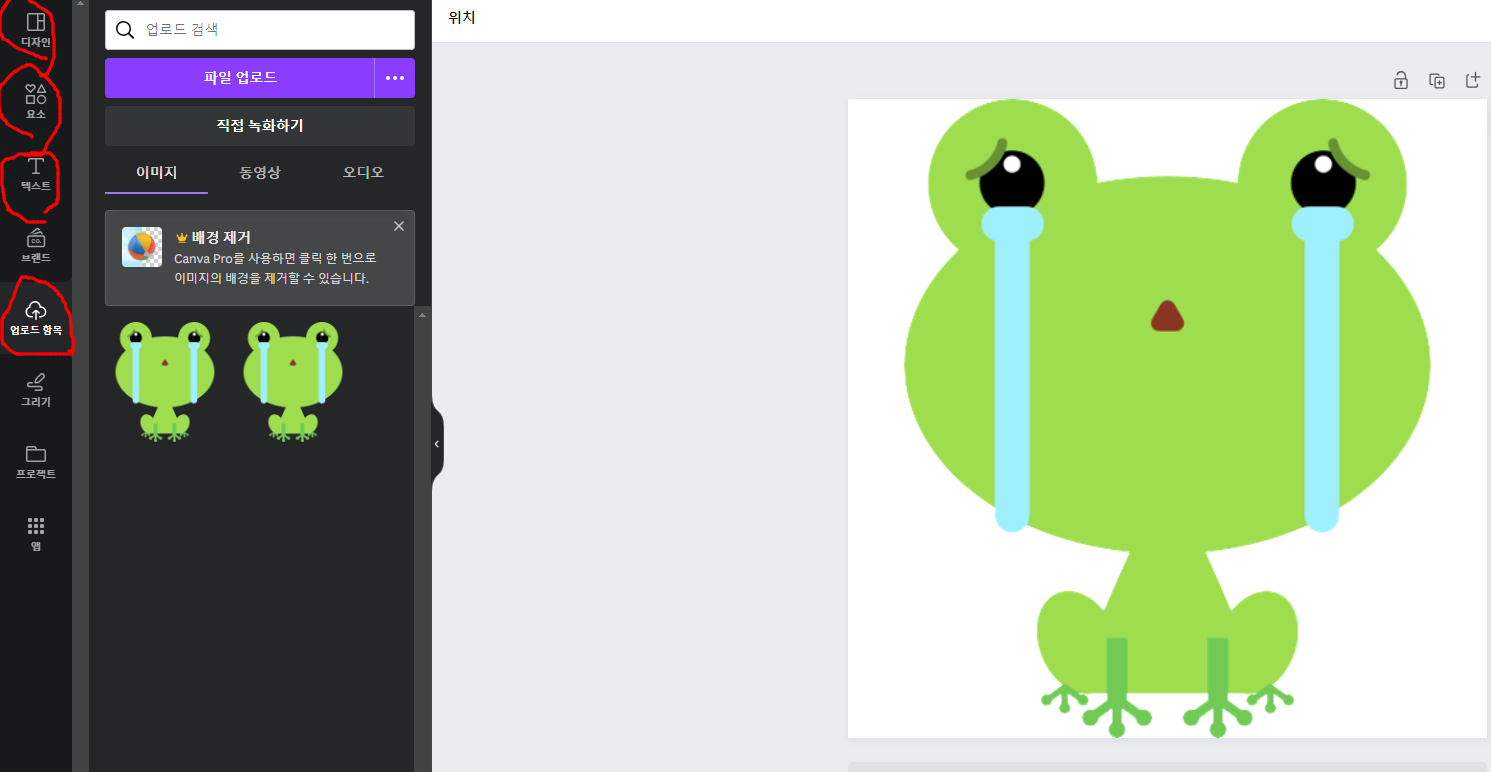 그리고 내 컴퓨터에 있는 사진을 편집하고 싶을 때는 '업로드 항목'을 클릭하시면 편집할 사진을 불러 올 수 있습니다.