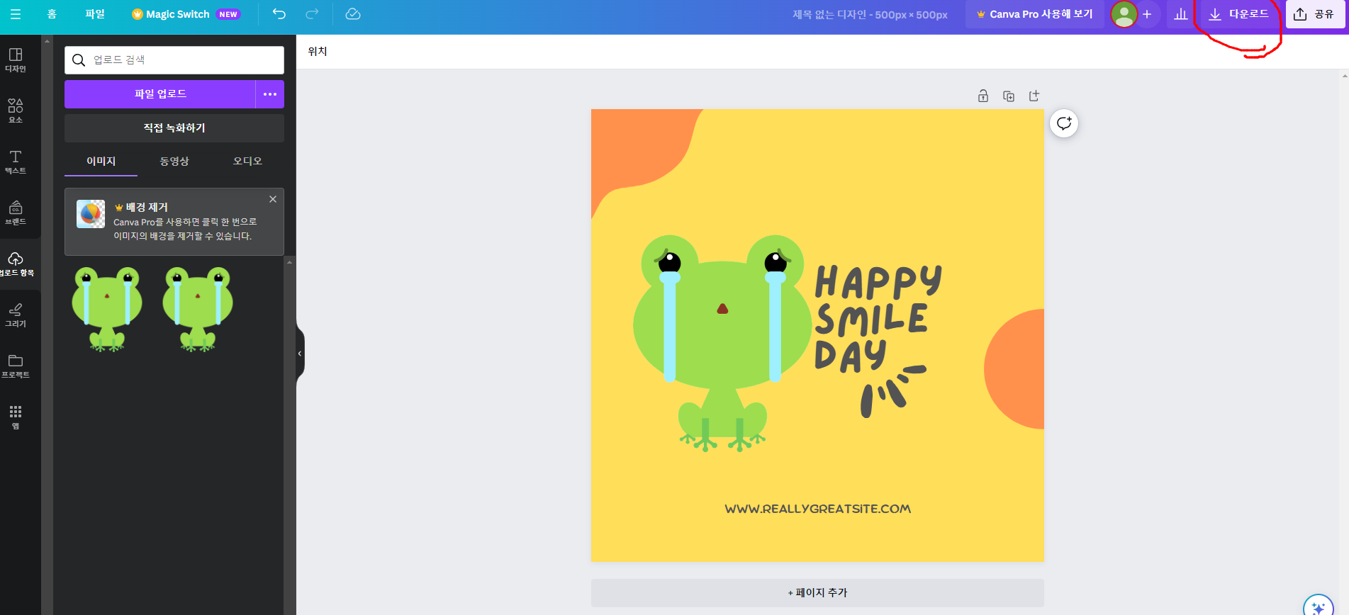 편집 다 하셨나요? 오른쪽 위에 보이는 다운로드 버튼을 클릭해주세요^^