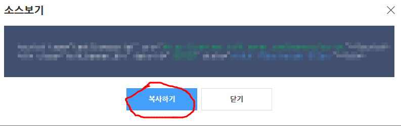 8. 소스보기를 클릭 후 <복사하기>