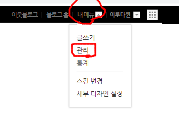 블로그 홈에서 오른쪽 위를 보시면 <내메뉴> 에서 <관리>로 들어 가주세요