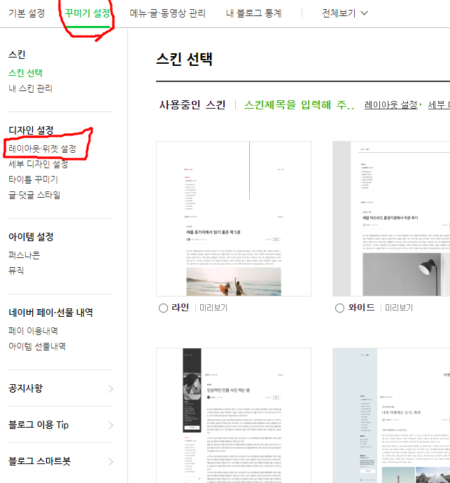 6. 기본형, 명함형, 블로그 3가지를 한번씩 클릭해보시고 마음에 드는 디자인을 선택해줏요. 저는 <블로그>형을 선택했습니다!